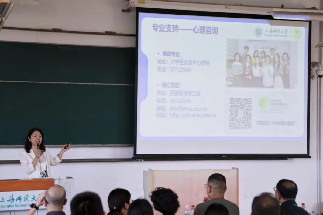 徐汇校区由卢燕老师主持。卢老师详细讲解了校园生活的各项注意事项,包括学籍管理、课程安排、宿舍规章、图书馆使用等实用信息。