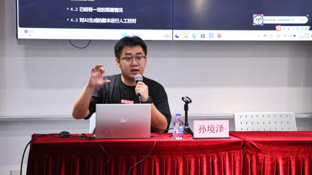 在“AI赋能宣讲”环节,市反邪教协会资深老师孙境泽围绕“AI如何助力反邪教宣传”展开演示,生动呈现了AI技术在视频创作中的高效运用。现场通过一段示例视频,孙境泽老师逐步展示了从图片生成、素材匹配,到智能剪辑、音效配置的全流程操作。同学们踊跃参与互动,亲身体验输入指令、生成脚本的过程。孙境泽老师强调,AI不仅是制作工具,更是激发创意的伙伴,能帮助青少年把严肃的安全知识转化为生动易懂的视觉作品。