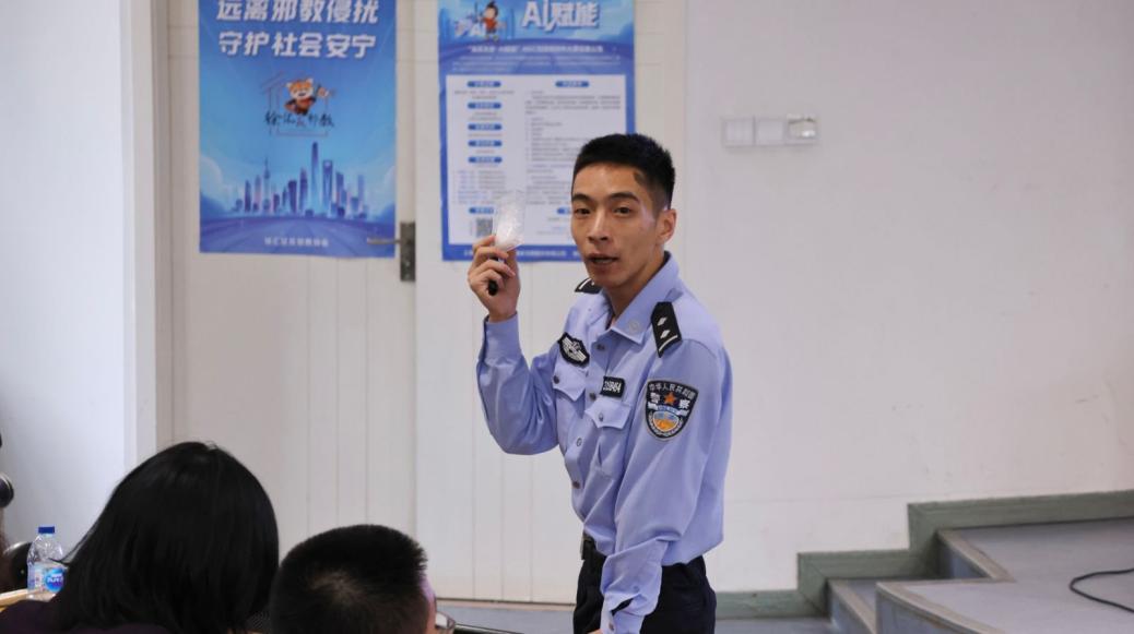 在禁毒宣传环节,上海市崧泽强制隔离戒毒所张继涛警官带来一场令人警醒的沉浸式教育。他将伪装成“奶茶粉”“巧克力”“电子烟”等形态的新型毒品模型带至师生面前,结合一线真实案例,层层拆解毒品如何披着“时尚外衣”诱人深入、步入深渊。张警官以“一次尝试,足以改变一生”的沉重警示,敲响全场警钟,并现场传授“不接受、不尝试、不进入”的“三不”防毒原则,为同学们提供清晰可行的行动指南。现场互动热烈,不少学生表示今后将更加警惕,坚决远离不明物品。