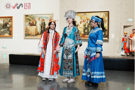 展演内容紧扣爱国主义主题,涵盖电影片段改编、诗朗诵和原创话剧等多种艺术形式。由2023级表演(师范)专业学生改编演绎的《东京审判》《风声》片段,回溯了民族危亡时的峥嵘岁月,表达了对革命先烈的深切敬意与当代青年传承红色基因的坚定信念。朗诵作品《黄河之水天上来》《吹号者》以语言的力量激荡人心——或如黄河奔腾,磅礴壮阔;或似号角破晓,清越激昂——展现出中华民族不屈不挠的生命力与精神力量。由师生共同创编的原创话剧《天安门前》,以孙慈溪的经典油画为灵感,将静态画面转化为动态叙事。来自不同民族、不同职业的人们齐聚天安门前,共同见证新中国诞生的伟大时刻。演员真挚的情感与展厅原作交相辉映,将现场气氛推向高潮,令观众深受触动。