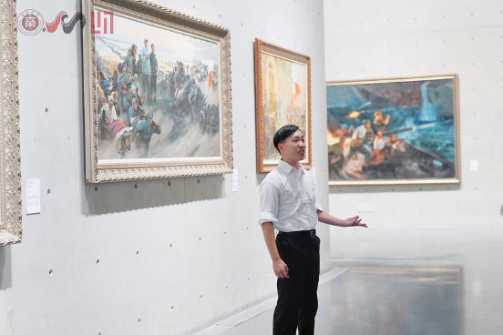为庆祝中华人民共和国成立76周年暨中国人民抗日战争暨世界反法西斯战争胜利80周年,2025年10月1日下午,上海师范大学影视传媒学院表演(师范)专业联合上海市南洋中学,在龙美术馆(西岸馆)“革命的时代”展厅共同举办了一场红色主题的展馆戏剧与思政教育联动活动。