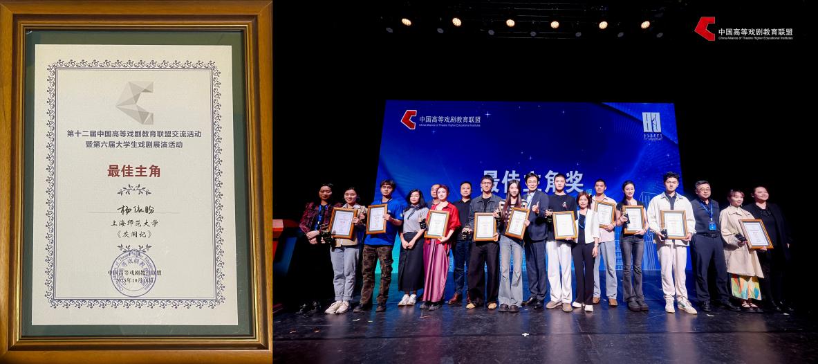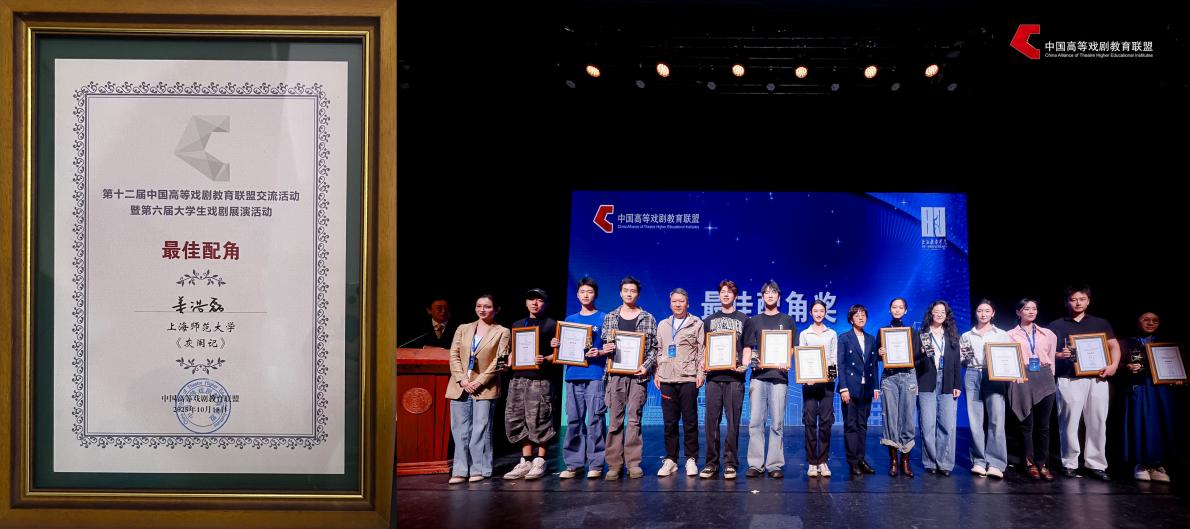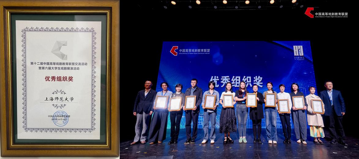 上海师范大学影视传媒学院表演(师范)专业师生以多种形式积极参与本次活动,在剧目评审、展演与学术研讨等环节中表现突出,最终荣获“优秀组织奖”,并斩获“最佳主角奖”“最佳配角奖”等多个奖项。