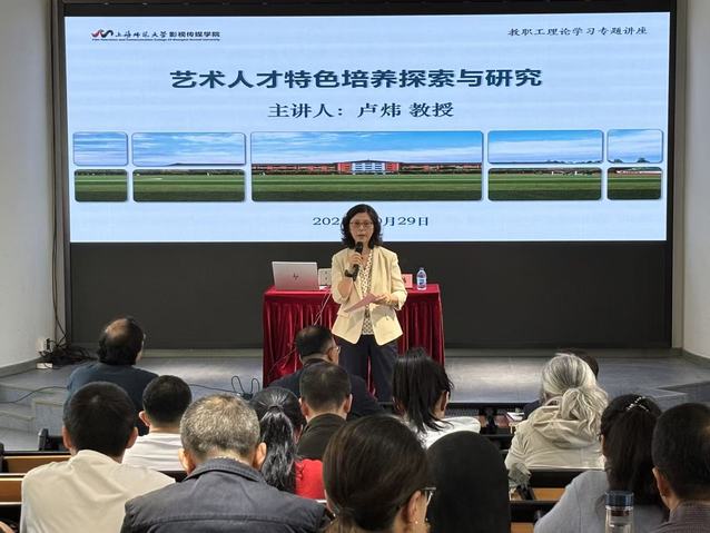为深入学习领会《习近平谈治国理政》第五卷精神,切实将学习成果转化为推动学科高质量发展的实际成效,2025年10月29日,影视传媒学院在四教B201教室开展全院教职工理论学习活动。本次活动特别邀请浙江传媒学院卢炜教授作题为《艺术人才特色培养探索与研究》的专题讲座,学院杨康贤书记致欢迎辞,齐青副院长主持并作总结讲话。