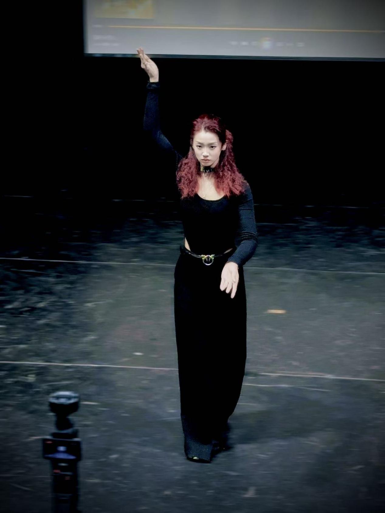 谈及进入铃木忠志剧团的经历时,她坦言自己并非起点最高,却依靠长期高强度训练和对舞台的坚定热爱,逐步获得重要角色,“咬牙坚持、挑战极限”成为她概括那段经历的关键词,也在现场激起了同学们的强烈共鸣。