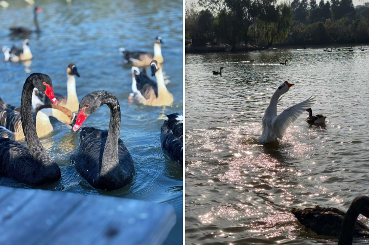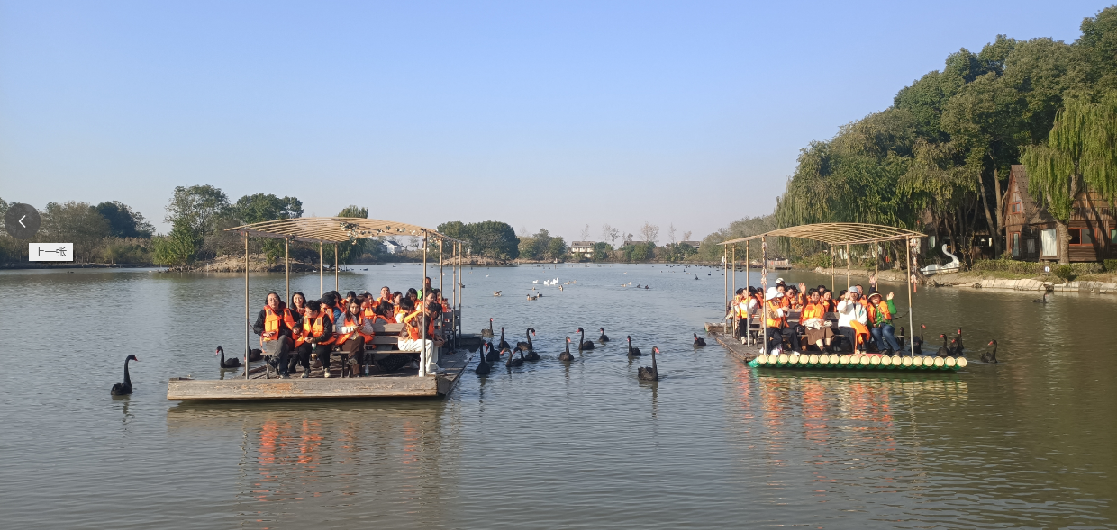 活动中,最受期待的莫过于乘坐竹筏游湖与黑天鹅亲密互动。竹筏缓缓驶至湖中央,黑天鹅们闻声聚拢,教职工们手持饲料轻轻投喂,看着这些优雅的生灵在船边嬉戏啄食,欢声笑语回荡在湖面。大家在与自然生灵的近距离接触中,深刻感受着生态保护的重要意义,也更加明晰全会提出“提升生态系统多样性、稳定性、持续性”的深远内涵。
