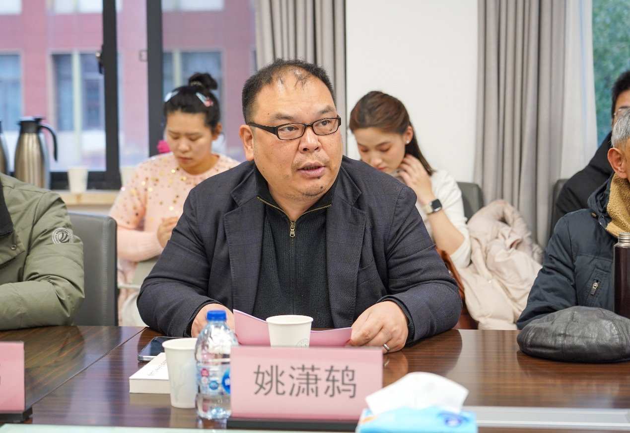 姚潇鸫教授代表学校社科处欢迎与会专家嘉宾,他回顾了我校著名学者唐力行、朱恒夫领衔的研究团队在评弹史料整理与戏曲生态研究方面的学术积累,肯定了周胜南新著的学术价值,期待与会专家建言献策,以进一步深化校际与业界合作,以形成学术与行业的共同体。